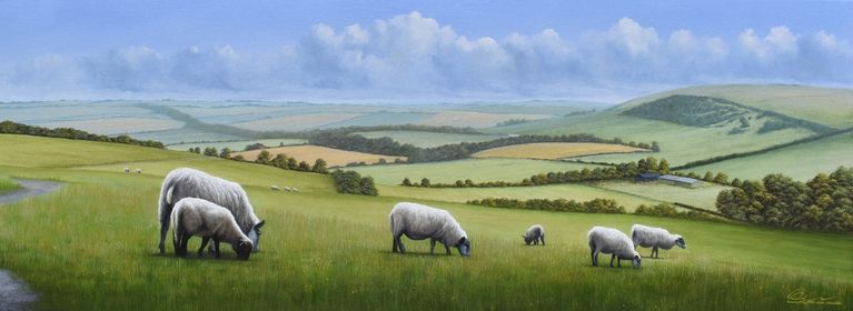 Original painting of a Downland scene in West Sussex - 80 x 33cm oil on stretched canvas